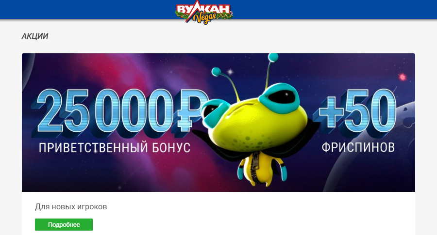 Всю информацию по действующим акциям Вулкан Vegas casino можно найти непосредственно на сайте. На сегодня в список предложений входят не только постоянные акции, но и временные события. Доступ ко всем постоянным предложениям можно получить только после регистрации. Например,